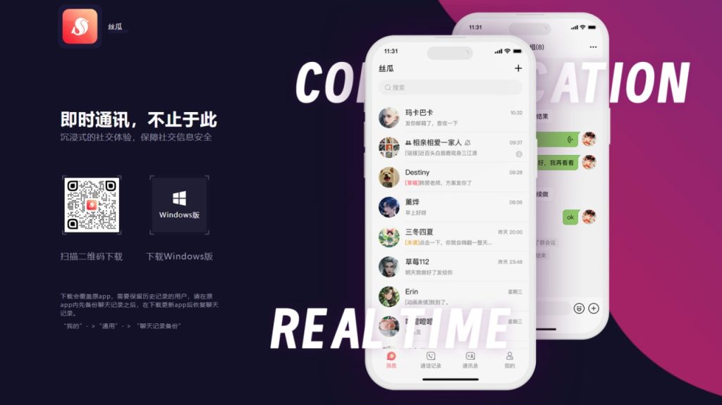 即时通讯功能:丝瓜聊天官网提供了全面的即时通讯功能,用户可以通过文字、语音、图片和视频进行沟通。支持单人聊天和群组聊天,用户可以方便地与朋友、家人或同事进行快速沟通。